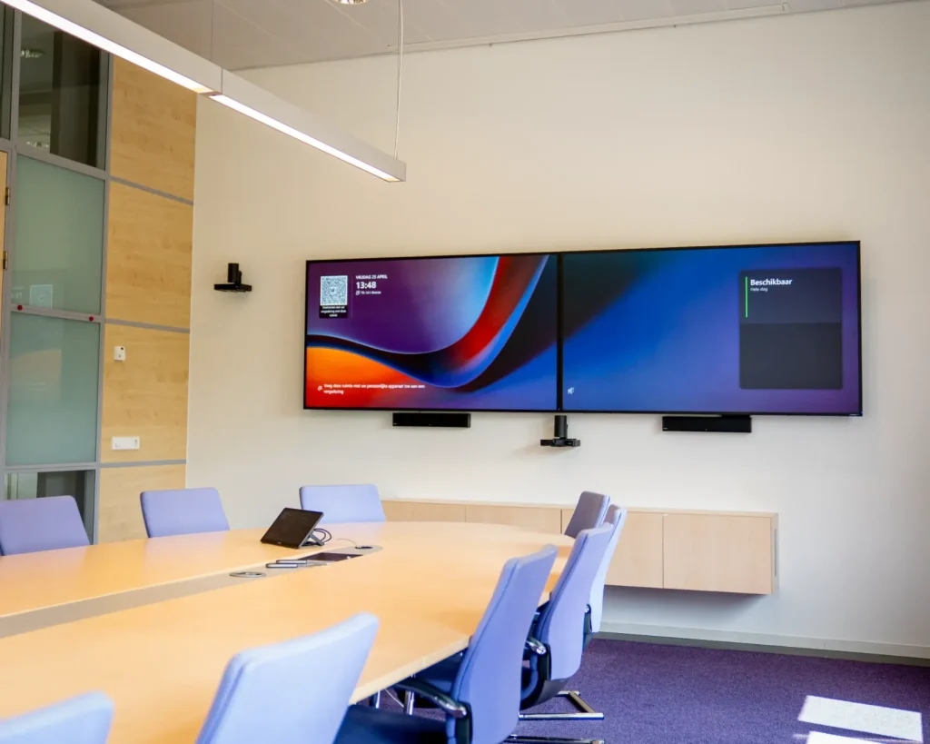 Geen discussies meer bij de vergaderruimte. Met intuïtieve panelen ziet u in één oogopslag de beschikbaarheid en boekt u direct de ruimte die u nodig heeft.
